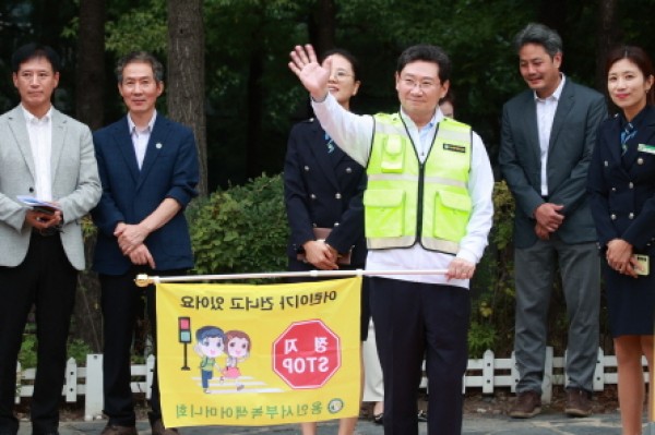 이상일 용인특례시장, 수지구 현암초 앞 교통지도 봉사 나서