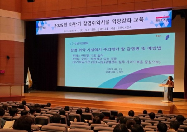용인특례시(시장 이상일)는 지난 22일 시청 3층 에이스홀에서 지역 내 감염취약시설 종사자 100여 명을 대상으로 ‘감염병 대응 역량 강화 교육’을 했다고 23일 밝혔다. 22일 시청 에이스홀에서 감염취약시설 종사자를 대상으로 교육이 진행되고 있다이날 교육은 감염병 유행 시 집단감염‧확산 위험이 큰 감염취약시설의 특성을 고려, 현장 종사자들이 즉각적인 대응 역량을 갖출 수 있도록 마련됐다. 교육은 감염취약시설…