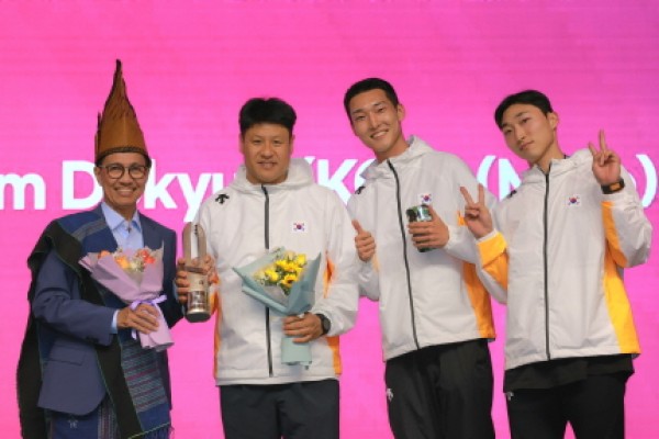 용인특례시(시장 이상일) 직장운동경기부 육상팀 소속 우상혁(높이뛰기)ㆍ유규민(세단뛰기) 선수가 오는 9월 13일부터 21일까지 일본 도쿄에서 열리는 ‘2025 세계육상선수권대회’ 국가대표로 최종 선발됐다고 28일 밝혔다. 용인특례시 직장운동경기부 육상팀 우상혁(오른쪽 두번째), 유규민(오른쪽 첫번째) 선수와 김도균(왼쪽 두번째)감독이 2025 구미 아시아육상경기 선수권대회에서 메달을 획득하고 기념촬영하고 있…