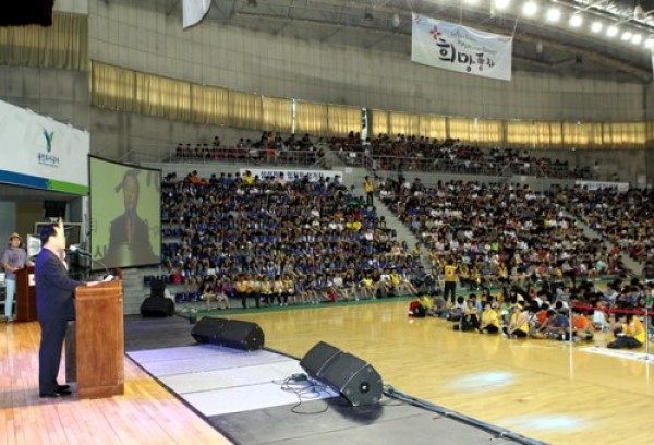 ‘제3회 용인시민 사랑나눔 기아체험’ 행사가 시민과 학생 3000여명의 뜨거운 호응 속에 지난 17일 용인실내체육관에서 성황리에 마무리됐다. 참가자들이 행사 현장에서 오전 9시부터 오후 5시까지 한 모금 물만 마시는 기아체험을 하고 한 끼 식사비 1만원을 기부하는 형식으로 진행된 이날 행사에 약3000만원의 기부금이 모였다. 기부금은 용인지역 청소년 …