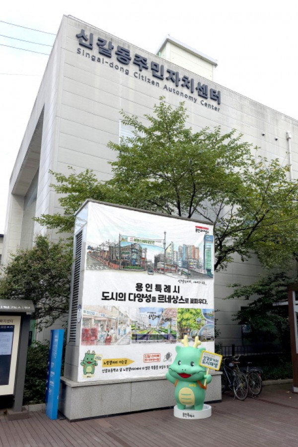 용인특례시(시장 이상일)는 신갈동 행정복지센터 야외 데크에 시 대표 캐릭터 ‘조아용’ 조형물을 설치했다고 10일 밝혔다.용인특례시가 신갈오거리 도시재생 사업 대상지에 조아용 조형물을 설치하고, 어반스케치 작품을 전시했다.이번에 설치된 조형물은 높이 1.6m, 폭 1.3m 규모로, 신갈오거리 도시재생의 상징물 역할을 맡게 된다. 주민과 방문객의 관심을 모으며 도시 공간에 활력을 더할 것으로 기대된다.시는 조아용 조형물과 더불어 …