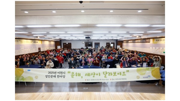 10월 30일(목) 이천시청(시장 김경희) 대회의실에서는 ‘문해, 세상이 달라 보여요’를 주제로 한 이천시 문해 교실 어르신 백일장이 열렸다.7. 이천시 성인 문해 교실 어르신 백일장 개최 이번 행사는 문해교육에 참여 중인 어르신 120여 명이 함께 해 배움의 열정과 글을 통한 소통의 기쁨을 나누는 뜻깊은 시간이었다. 이날 행사장에는 ‘제14회 대한민국 문해의 날’ 시화전 수상 작품 전시회와 함께, 이천시…