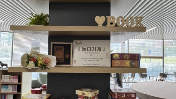 경기도 북부청사 경기평화광장도서관 보드게임 체험공간 ‘놀다가게’가 지난 11일 서울 광화문광장에서 열린 ‘올해의 우리말빛’에서 공간부문에 선정됐다.놀다가게+우리말빛+인증+(1)‘올해의 우리말빛 ’선정은 바른 국어 문화 확산을 위해 한글학회와 국어문화원연합회가 공동으로 선정하는 행사로 정…