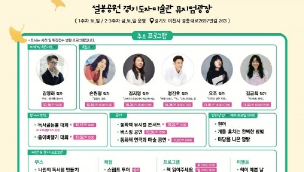 이천시(시장 김경희) 도서관은 오는 10월 18일(토) 경기도자미술관 뮤지엄광장에서 시민과 책이 만나는 야외 도서관 ‘난생처음 도서관’의 문을 연다.1. 이천시 난생처음 도서관 개막식 및 김영하 작가 북콘서트 개최1 ‘난생처음 도서관’은 시민 누구나 잔디 위에서 책을 읽고, …