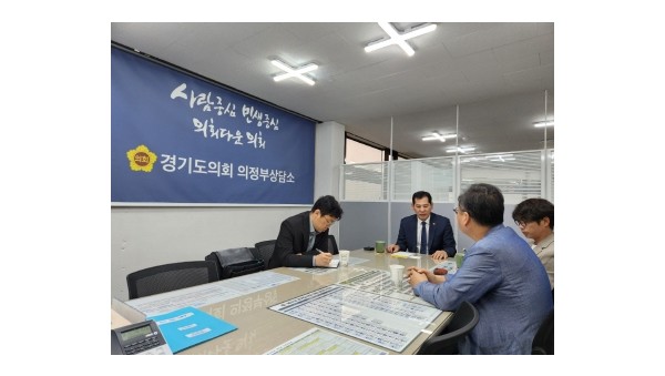 경기도의회 문화체육관광위원회 이영봉 위원장(더불어민주당, 의정부2)은 지난 7일 도의회 의정부상담소에서 (사)경기민예총 김태현 이사장, 김성수 사무총장, (사)한국민족예술단체총연합 강욱천 사무총장 등을 만나 ‘2024년 세계예술인한반도평화대회’ 예산 확충 요청 건의안 등 현안에 대해 논…