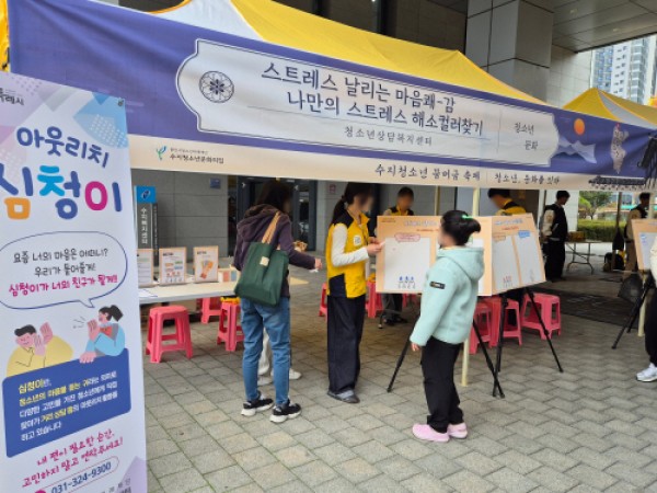 용인시청소년미래재단(대표이사 김영우) 청소년상담복지센터는 11월 8일(토) 수지구청 어울림 광장에서 열린 ‘2025 수지꿈머굼 청소년축제 「청소년, 문화를 잇다」’ 현장에서 제10차 아웃리치 「스트레스 날리는 마음 쾌-감!」 체험부스를 운영하며 청소년과 시민들의 큰 호응을 얻었다.붙임2 사진자료이번 아웃리치 활동은 단국대학교 동아리 ‘카운티어 눈꽃’이 기획했으며, 청소년들이 일상 속 스트레스를 인식하고 자신에게 맞는 해소 방법…