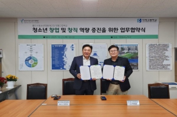 (재)용인시청소년미래재단(이사장 이상일)은 지난 23일 덕영고등학교와 청소년의 창업 및 창직 역량 증진을 위한 업무협약(MOU)을 체결했다. 청소년 창직창업 역량 증진을 위한 업무협약 체결상호 기관은 본 협약의 목적을 달성하기 위해 ▲청소년 창의 및 창업 역량 강화를 위한 교육 프로그램 공동 기획 및 운영 ▲용인시 진로교육 및 청소년 사업 활성화를 위한 상호협력 ▲지역사회 연계 네트워크 구축 등에 대해 상…