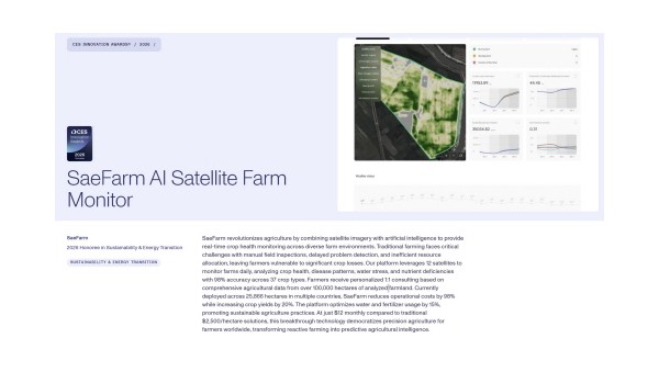 경기도농업기술원과 연천군, 주식회사 새팜이 공동으로 추진한 ‘농림위성 영상 AI 분석기술 활용 생산단지 의사결정시스템’이 세계적 기술 전시회 ‘CES(세스) 2026’ 개최를 앞두고 혁신상을 수상했다.사진자료(9)CES(Consumer Electronics Show)는 미국 라스베이거스…