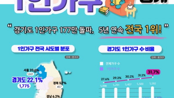 경기도 1인가구 177만. 5년째 전국 최고치 경신