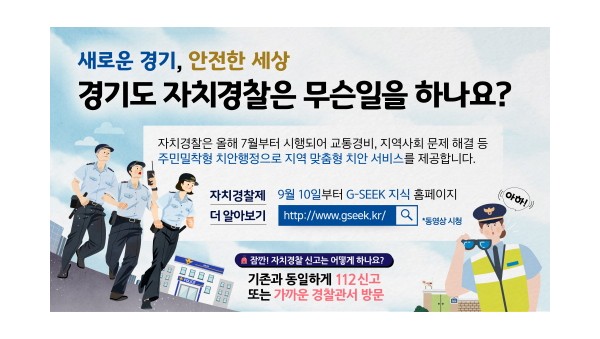 경기도남부자치경찰위원회는 지난 7월 1일 전면시행된 자치경찰제에 대해 도민과 도내 공무원을 대상으로 온라인 교육을 진행하고 있다고 5일 밝혔다. 경기도 평생학습포털 지식(G-SEEK)을 통해 이뤄지는 이번 교육은 영상 콘텐츠를 통해 도민과 일선 공무원들이 자치경찰제에 대해 자연스럽게 접근할 수 있도록 돕는 데 목적을 뒀다. 자치경찰+이미지 특히 이번 프로그램은 이미 제작돼 제공 중인 ‘자치경찰제(…