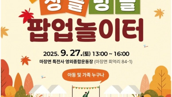 이천시(시장 김경희)는 아동친화도시 놀이문화 확산과 아동의 놀 권리 보장을 위해 「찾아가는 싱글벙글 팝업 놀이터 ‘가을소풍’」 행사를 오는 9월 27일(토) 마장면 특전사 영외종합운동장에서 개최한다고 밝혔다. 5. 이천시 2025년 찾아가는 싱글벙글 팝업 놀이터 개최 「찾아가는 싱글벙글 팝업 놀이터」는 계절별 콘셉트로 진행되는 가족 참여형 놀이문화 프로그램으로, 올해 총 3회에 걸쳐 운영…