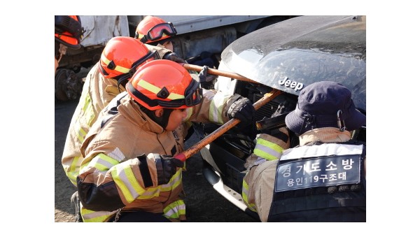 용인소방서, 교통사고 대응역량 강화를 위한 폐차 활용 인명구조 훈련 실시
