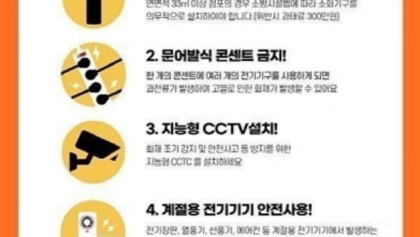 용인서부소방서는 무인점포의 증가에 따라 화재 예방과 자율 안전관리 강화를 위한 ‘무인점포 화재안전관리 강화 대책’을 본격 추진한다.무인점포 화재예방 안전수칙_포스터최근 비대면 소비문화 확산으로 무인점포가 급격히 늘고 있으며, 전국 무인점포의 27%가 경기도에 집중돼있다. 그러나 영업주가 상주하지 않아 화재 발생 시 신고 지연과 초기 대응이 어려운 특성상, 신속한 대응체계와 사전 안전관리가 절실한 상황이다.이번 대책은 관내 21…