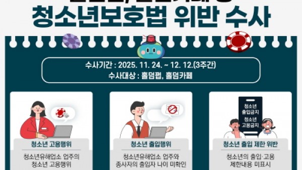 경기도 특사경, 홀덤 펍·카페 청소년 출입·고용 불법행위 집중 수사