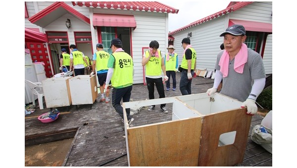 용인시는 25일 최근 기록적인 폭우로 큰 피해를 입은 청주시 상당구 미원면 옥화리 일대에서 직원 90명이 현장에 나가 복구작업을 지원했다고 밝혔다. 이날 직원들은 물에 잠겼던 펜션 내부…