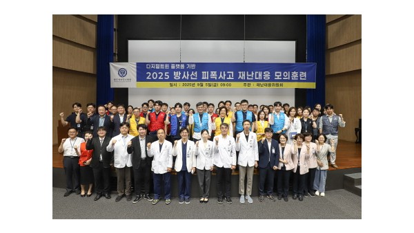 연세대학교 용인세브란스병원(병원장 김은경)은 5일 가상환경인 ‘디지털 트윈 플랫폼’을 기반으로 방사선 피폭사고 재난 대응 모의훈련을 실시했다.9월 5일 용인세브란스병원에서 진행한 디지털 트윈 플랫폼 기반 방사선 피폭사고 대응 모의훈련에서 참석자들이 단체사진을 촬영하고 있다.9월 5일 용…
