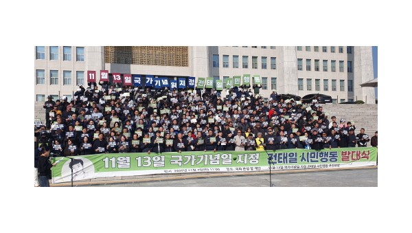 11월 4일 오전 11시 30분, 국회 본청 앞 계단에서 ‘11월 13일 국가기념일 지정 전태일 시민행동’ 발대식이 열렸다. 당초 오전 11시에 예정되어 있던 본 행사는 이재명 대통령의 국회 시정연설로 인해 30분 늦게 시작되었다. 이날 현장에는 노동계, 시민사회, 청년단체 등 300여…