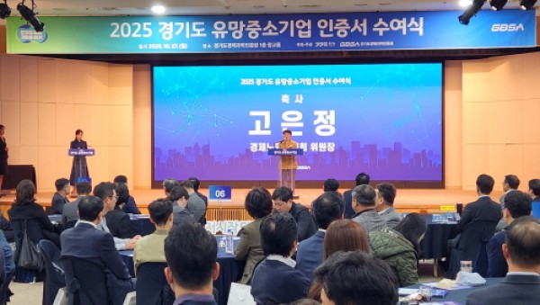 경기도의회 경제노동위원회 고은정 위원장(더불어민주당, 고양10)은 27일(월) 경기도경제과학진흥원 광교홀에서 열린 ‘경기도 유망중소기업 인증서 수여식’에 참석했다.251028 고은정 의원, ‘경기도 유망중소기업 인증서 수여식’ 참석 (1)고은정 위원장은 “어려운 경제 여건 속에서도 경영…