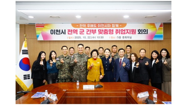 이천시(시장 김경희)는 오는 11월 군에서의 헌신이 사회에서의 성공으로 이어질 수 있도록 전역 및 전역 예정 간부를 위한 실전 코칭 프로그램을 본격 운영한다고 밝혔다. 1. 이천시 전역 간부의 인생 2막을 책임진다1 민·관·군 상생과 협력의 차원에서 기획된…