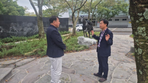 경기도의회 농정해양위원회 부위원장 윤종영 의원(국민의힘, 연천)은 10월 22일(수) 한국마사회 제주본부를 방문해 군마 ‘레클리스’ 기념행사의 의미를 공유하고, 경기도와 제주특별자치도, 한국마사회 간 협력 방안을 논의했다.251023 윤종영 의원, “군마 레클리스 기념행사, 경…