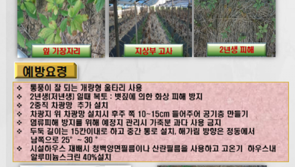경기도농업기술원은 올여름 7~8월 기온이 평년보다 높을 것으로 전망됨에 따라 인삼 재배농가에 고온피해 예방을 위한 사전 관리를 당부했다. 인삼+고온피해+방지+요령 인삼은 대표적인 호냉성 작물로, 5~7일간 일 최고기온이 30℃ 이상 지속되면 잎이 타거나 심하게는 식물…