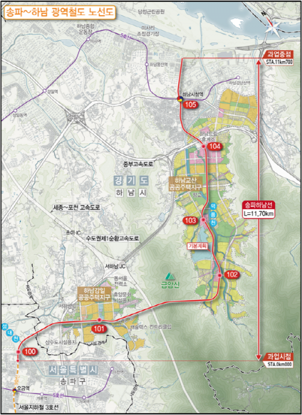 경기도는 지난 16일 하남시 감일동 행정복지센터에서 ‘송파하남선 광역철도 기술형 입찰사업’의 사전 설명회를 개최했다.송파하남선+광역철도+노선도이번 설명회는 일괄입찰로 추진하는 ‘송파하남선 광역철도’ 건설공사에 참여를 희망하거나, 관심이 있는 건설사와 엔지니어링사를 대상으로 입찰 공고 이전 단계에서 사업의 주요 내용을 공유하고 업계의 다양한 의견을 청취하기 위해 마련됐다.‘송파하남선 광역철도 건설사업’은 현재 오금역까지 운행 중…