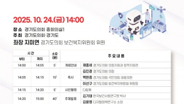 경기도의회 보건복지위원회 지미연 의원(국민의힘, 용인6)은 오는 10월 24일(금) 오후 2시, 경기도의회 중회의실 1에서 ‘사회복지와 AI, 안전·윤리적 활용을 위한 정책토론회’를 개최한다.251016 지미연 의원, ‘사회복지와 AI, 안전·윤리적 활용을 위한 정책토론회’ 개최이번 토론회는 인공지능(AI)이 복지 현장에서 빠르게 확산되는 가운데, AI 기술의 안전성과 윤리성을 확보하면서 도민이 체감할 수 있는 복지 혁신 방향…