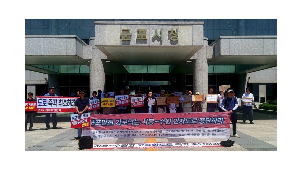 경기도의회 부의장 정윤경 도의원(더불어민주당, 군포1)은 10일(목) 군포시청 앞에서 열린 ‘군포 발전 가로막는 시흥-수원 민자도로 사업 반대 기자회견’에 참석해 “군포 시민의 동의 없는 개발은 있을 수 없다”라며 사업의 전면 재검토를 강력히 촉구했다. 시흥-수원 고속화도로 사업 반대.. (1) 이번 기자회견은 해당 사업은 군포시의 미래 발전 가능성을 가로막고, 시민의 건강과 안전을 위협하며, 재산권을 침해…