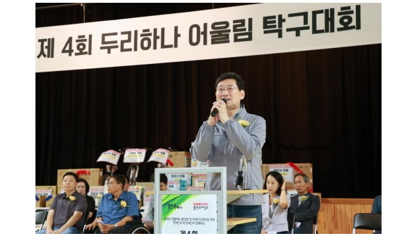 이상일 용인특례시장은 20일 용인실내체육관에서 열린 ‘제4회 두리하나 어울림 탁구대회’를 찾아 선수들을 격려하고, 대회 개최를 축하하는 시타자로 나섰다. 이상일 용인특례시장이 20일 용인실내체육관에서 열린 '두리하나 어울림탁구대회'에 참석해 인사말을 하고 있다. 이 대회는 장애인 생활체육 활성화와 장애 인식개선을 위해 용인시처인장애인 복지관이 주관하고 용인시장애인체육회가 주최했다. &nbs…