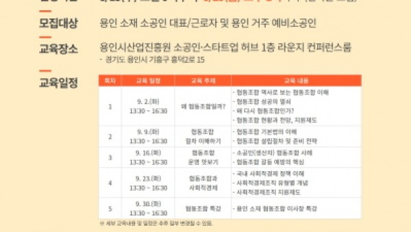 용인시산업진흥원, 소공인을 위한 협동조합 아카데미 교육생 모집