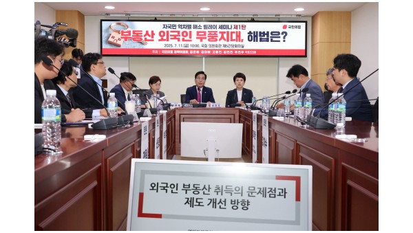 국민의힘 김은혜 의원(원내정책수석부대표, 경기 분당을)이 11일 국회에서 국민의힘 정책위원회, 김미애·고동진·김민전·주진우 의원과 함께 「자국민 역차별 해소 릴레이 세미나’ 제1탄 – 부동산 외국인 무풍지대, 해법은?」을 개최했다. 이번 세미나는 외국인에게는 각종 규제가 사실상 적용되지…