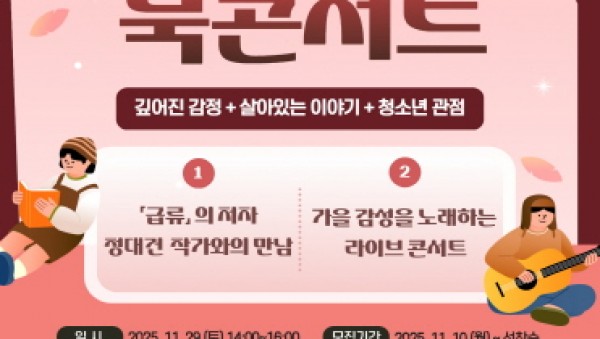 재단법인용인시청소년미래재단(이사장 이상일) 용인시청소년수련관 소속 청소년운영위원회 ‘별하’와 청소년동아리가 오는 29일(토) 청소년이 직접 기획하고 운영하는 「북콘서트」를 진행한다. 이번 행사는 청소년이 직접 프로그램을 구성하고 만나고 싶은 작가를 초청하며, 동아리…