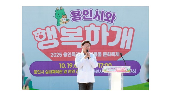이상일 용인특례시장은 19일 처인구 마평동의 ‘SERI PAK with 용인’ 앞 천연잔디광장에서 열린 ‘2025 용인시와 행복하개’ 축제에 참석해 반려동물 가족과 함께 소통하는 시간을 가졌다. 이상일 용인특례시장은 19일 '용인시 행복하개' 반려동물 문화축제에 참석해 인사말 …