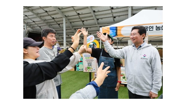 용인특례시(시장 이상일)는 지역 우수 농산물을 널리 알리기 위해 18일 시청 광장에서 열린 ‘2025년 제7회 용인 북페스티벌’ 현장에서 시민 참여 이벤트 ‘책 속 한 줄 쓰Go, 농산물 받Go’를 진행했다. 이상일 용인특례시장이 18일 시청 광장에서 열린 '책 속 한 줄 쓰G…