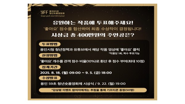 용인특례시, ‘용인 59초 청년 숏폼 영화제’ 온라인 투표 시작