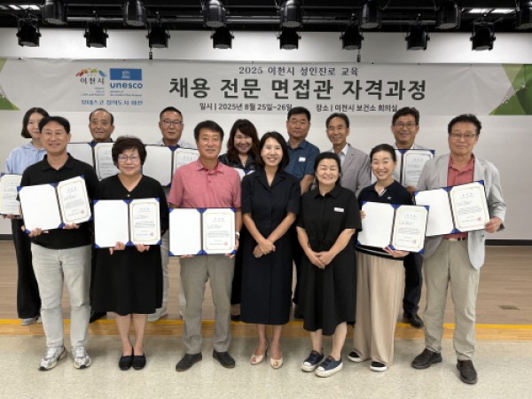 이천시, 평생학습 성인 진로 교육 과정 참여자 13명 ‘채용 전문 면접관 자격증’ 취득