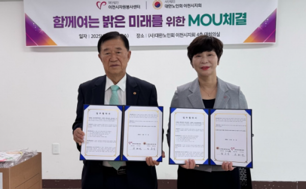 이천시자원봉사센터, 대한노인회 이천시지회와 업무협약 체결…건강한 노후생활과 자원봉사 활성화 기대