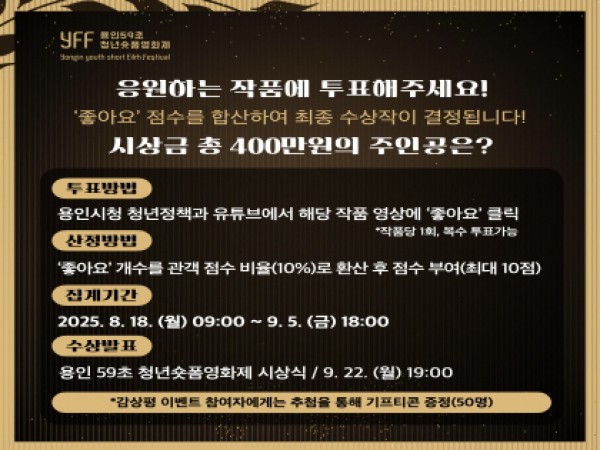용인특례시, ‘용인 59초 청년 숏폼 영화제’ 온라인 투표 시작