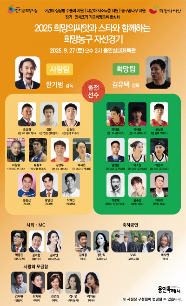 용인특례시에서 ‘2025 희망의씨앗과 스타와 함께하는 희망농구 자선경기’ 열려
