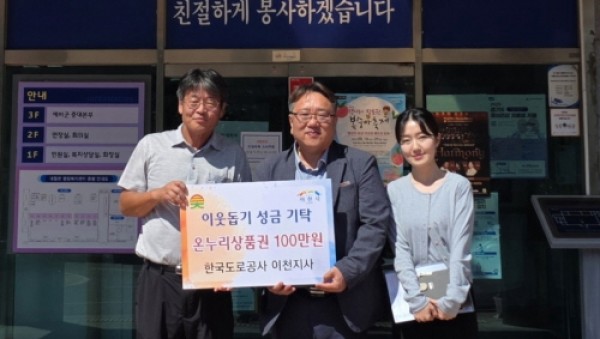 한국도로공사 이천지사(지사장 김성욱)는 9월 10일 추석 명절을 앞두고 관내 취약계층 지원을 위해 100만 원 상당의 온누리상품권을 대월면 행정복지센터에 기탁했다.4. 한국도로공사 이천지사 추석 맞아 온누리상품권 100만 원 기탁 이천지사는 2017년부터 매년 명절…