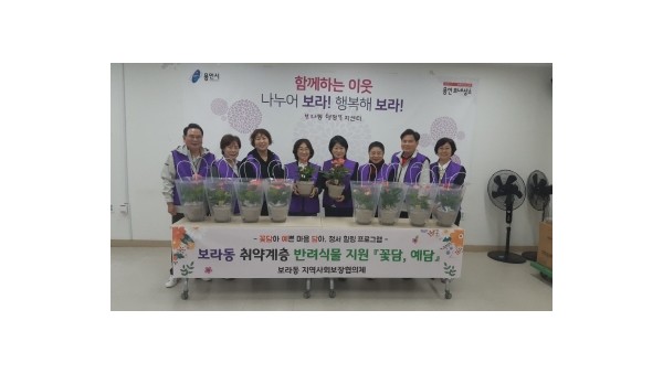 용인특례시(시장 이상일)는 각 읍·면·동 지역사회보장협의체에서 취약계층을 대상으로 다양한 지원사업을 펼쳤다고 26일 밝혔다. 기흥구 보라동 지역사회보장협의체(민간위원장 박명옥)는 24일 취약계층 반려식물 지원사업 ‘꽃담아, 예쁜 마음 담아’를 진행했다.이날 협의체 위원들은 어르…