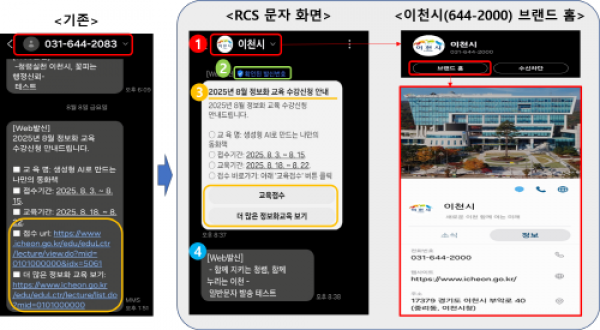 이천시(시장 김경희)는 시민과의 신뢰 있는 소통 강화를 위해 문자 발송 시스템에 ‘안심마크’를 적용한 RCS(Rich Communication Services) 기반 서비스를 도입해 운영을 시작했다고 밝혔다.3. 이천시 문자 안심마크 서비스 도입 스미싱 피해 예방하고 시민 신뢰도 높인다 이번 사업은 최근 증가하는 스미싱 문자로 인한 사회적 피해를 예방하고, 행정 정보 전달의 신뢰도를 높이기 위해 추진됐다. 기존의 문자 발송 방식은 발신 번호만 표시돼, 수신자가 문자의 출처를 명확히 확인하기 어려웠다. 이로 인해…