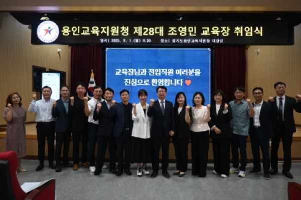 경기도용인교육지원청(교육장 조영민)은 1일, 청사 4충 대강당에서 제28대 조영민 교육장의 취임식을 개최했다.제28대 조영민 용인교육지원청 교육장 취임조영민 교육장은 취임사에서 “마음으로 학생들을 바라보고 동료의 마음으로 함께 일하는 이들을 존중하는 데서 신뢰가 시작된다”는 교육 철학을 밝혔다. 이어“우리 교육지원청의 가장 소중한 존재는 직원 여러분이며 ‘동진대성(同進大成)’, 곧 함께 나아갈 때 큰 성취를 이룰 수 있다”고 강조했다.또한 “안으로는 내실을 다지고 밖으로는 미래를 바라보는 교육을 통해 경기 교육의 표준이 되고, 나아…