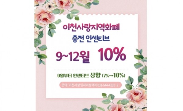 이천사랑 지역화폐, 충전 인센티브 10% 상향…소상공인 활력 기대