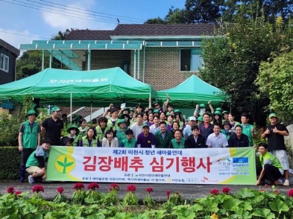 이천시 청년 새마을연대(회장 최병무)는 지난 8월 30일 백사면 일원에서 연말 소외계층을 위한 김장 나눔에 활용할 김장배추 심기 행사를 했다.3. 이천시 청년 새마을연대 김장배추 심기 행사 진행 이번 행사에는 박명서 이천시의회 의장을 비롯한 시·도의원과 새마을 이천시지회, 읍면동 새마을남녀협의회, 청년새마을연대 회원이 참여했으며, 경기도 청년새마을연합회와 경기도 대학 새마을동아리 연합회 청년들도 함께해 배추 모종 1만 포기를 심었다. 행사에 쓰인 모종은 이천농협(조합장 이덕배)이 후원했으며, 배추는 오는 11월…